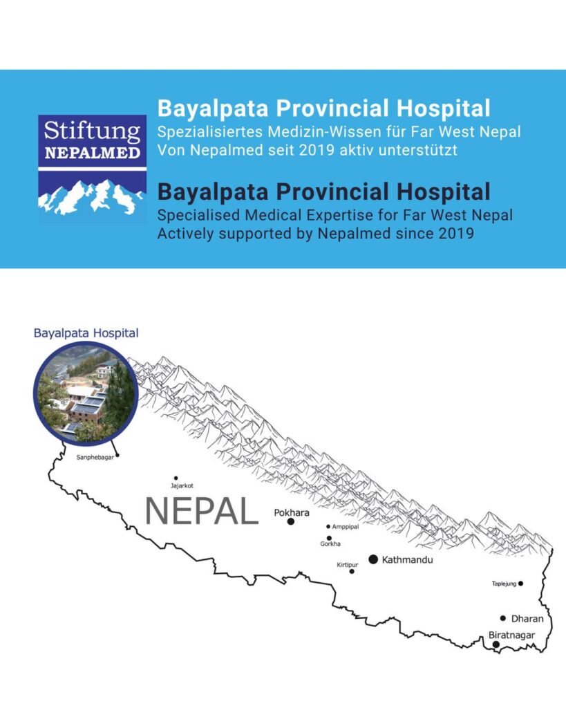 Nepalmed e.V. is an aid organization and promotes Nepalese initiatives in the field of medicine and health care. Especially education and training of medical staff as well as the financing of maintenance measures of hospitals